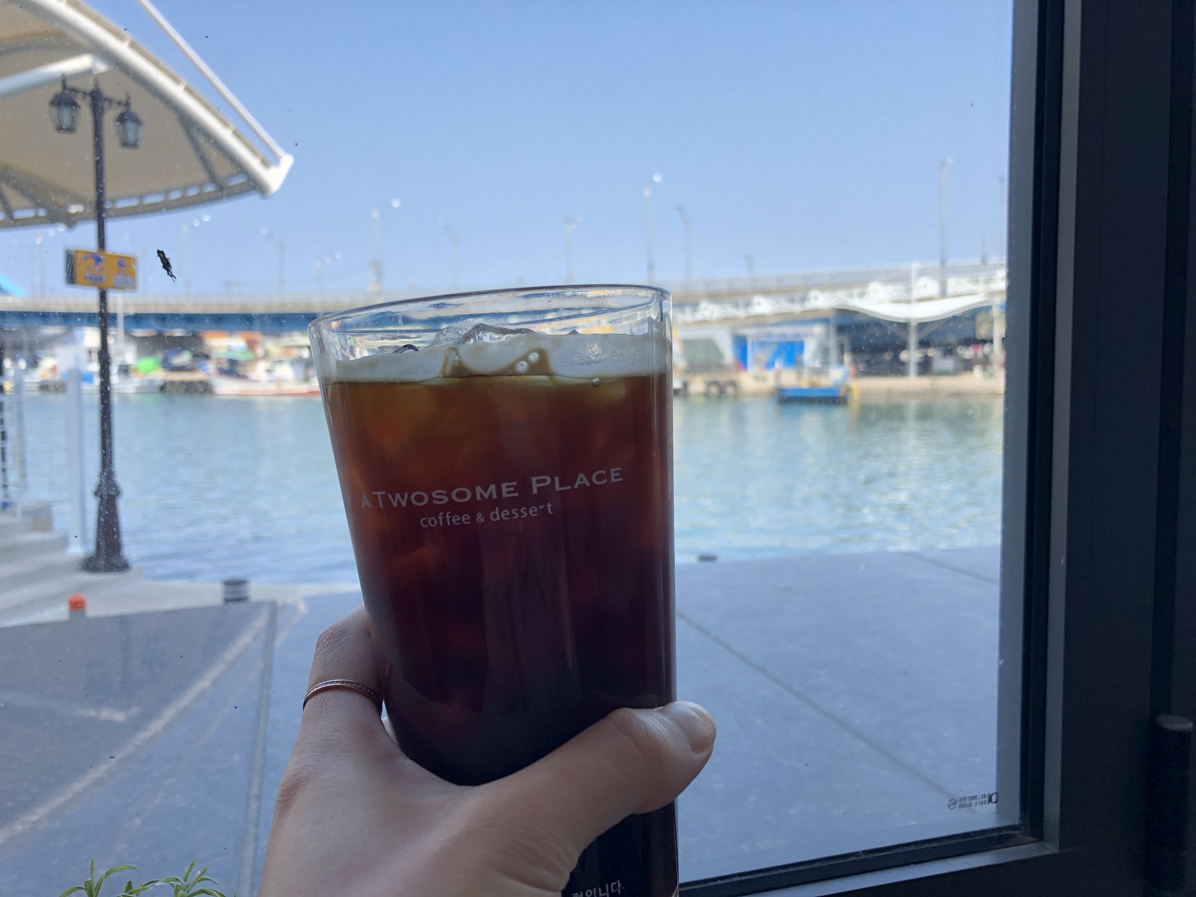 근처 투썸에서 바다 바라보며 아.아 한잔 때리고.