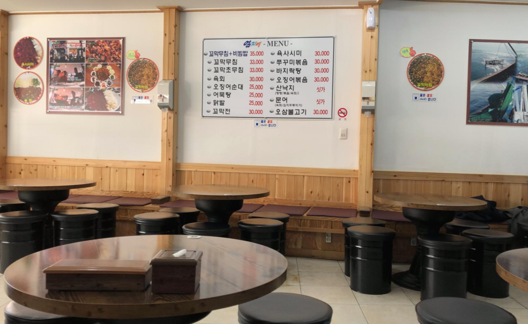 3명이나 4명이 오면 육사시미나 오징어순대 시켜서 술한잔 하면 딱 좋을 것 같은 생각을 했다.