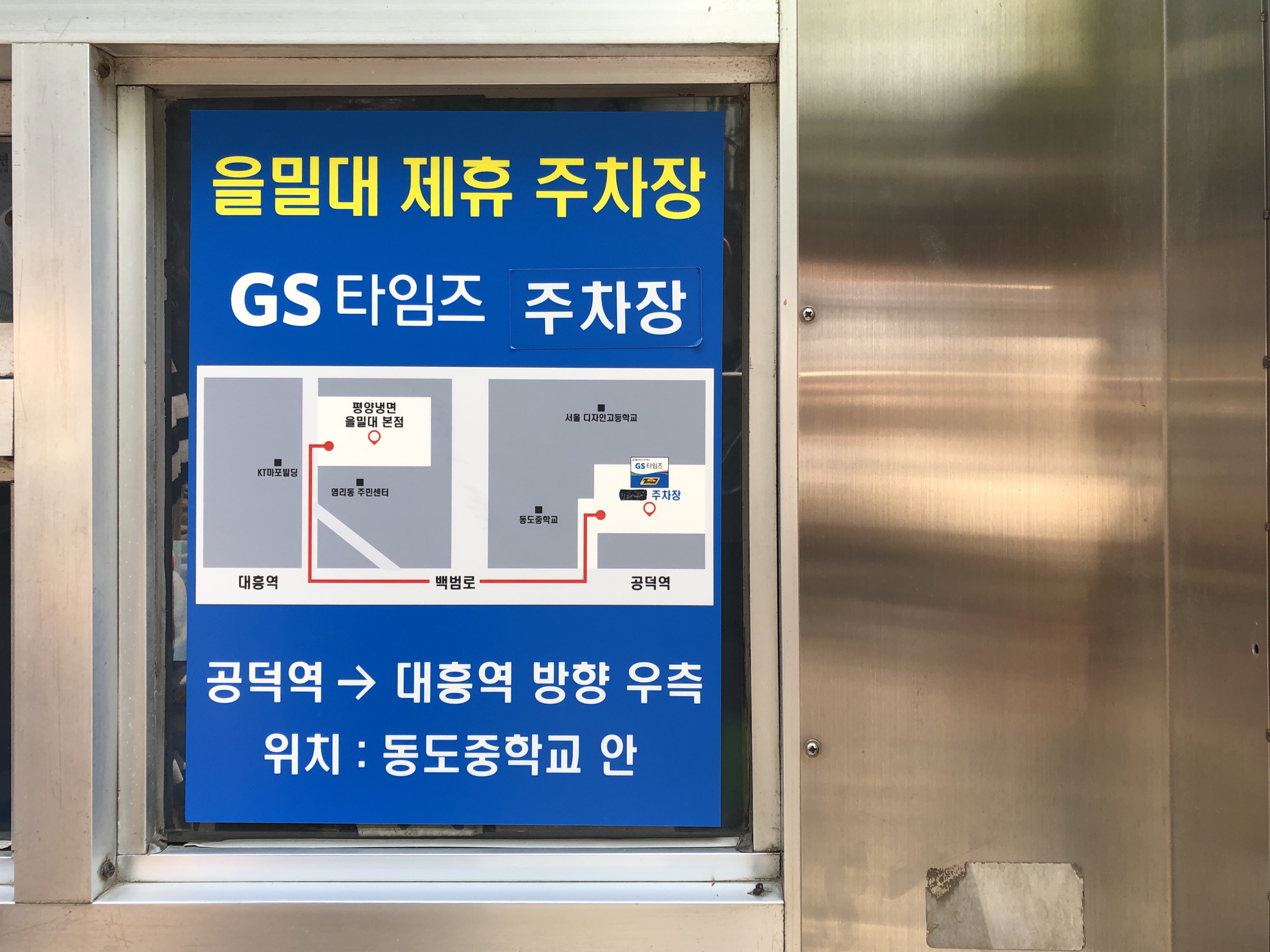 또는 공덕역 방향으로 가서 동도중학교 안 gs 타임스 주차장을 이용할 수 있다고 한다.