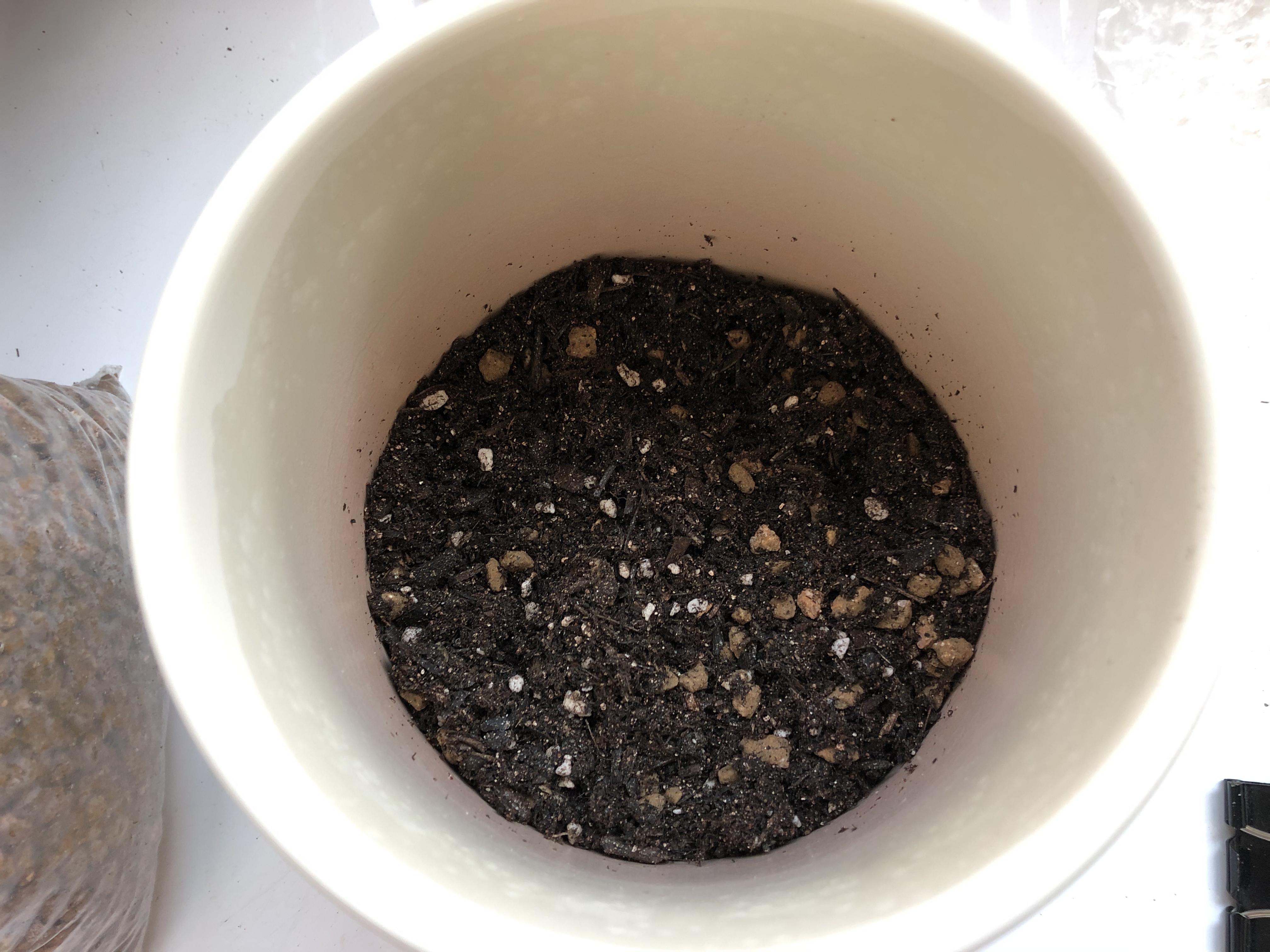 분갈이용토에 굵은모래를 더 섞어 물빠짐이 좋도록 해주었다. 꽃집에서 2kg 2천원에 사온 분갈이용토는 펄라이트와 마사, 바크 등이 이미 섞여있었지만 마사를 조금 더 추가해주었다.