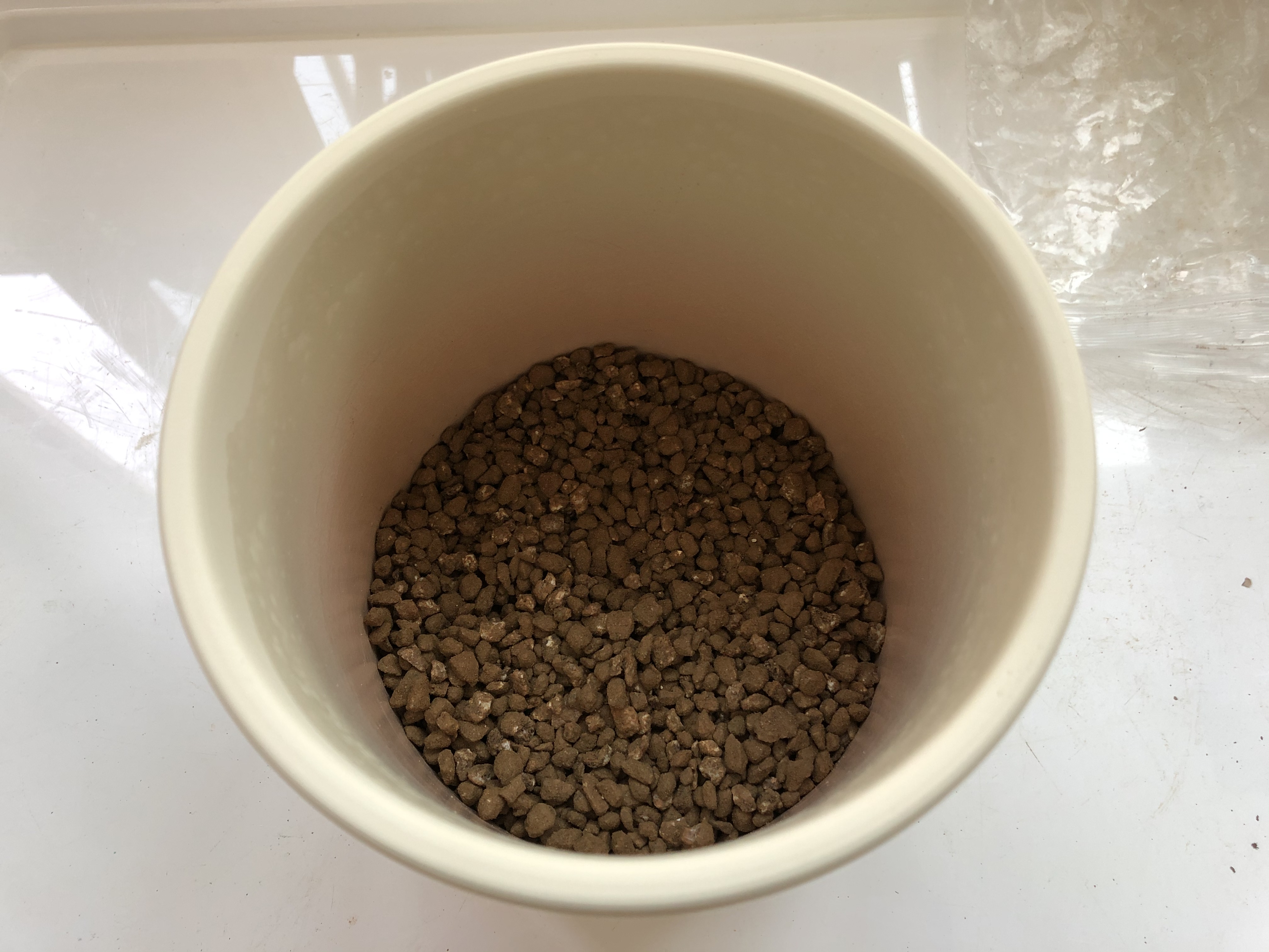 준비한 화분에 거름망과 굵은모래(마사)를 깔았다. 대립이 없어 중립으로 2센치정도 부어주었다. 라일락처럼 꽃이 피는 아이는 물을 자주 줘야 한다는데, 물을 좋아하는 아이 치고 배수 잘 안되도 괜찮은 아이는 본 적이 없다. (거의 모든 식물이 배수가 잘되어야 한다.)