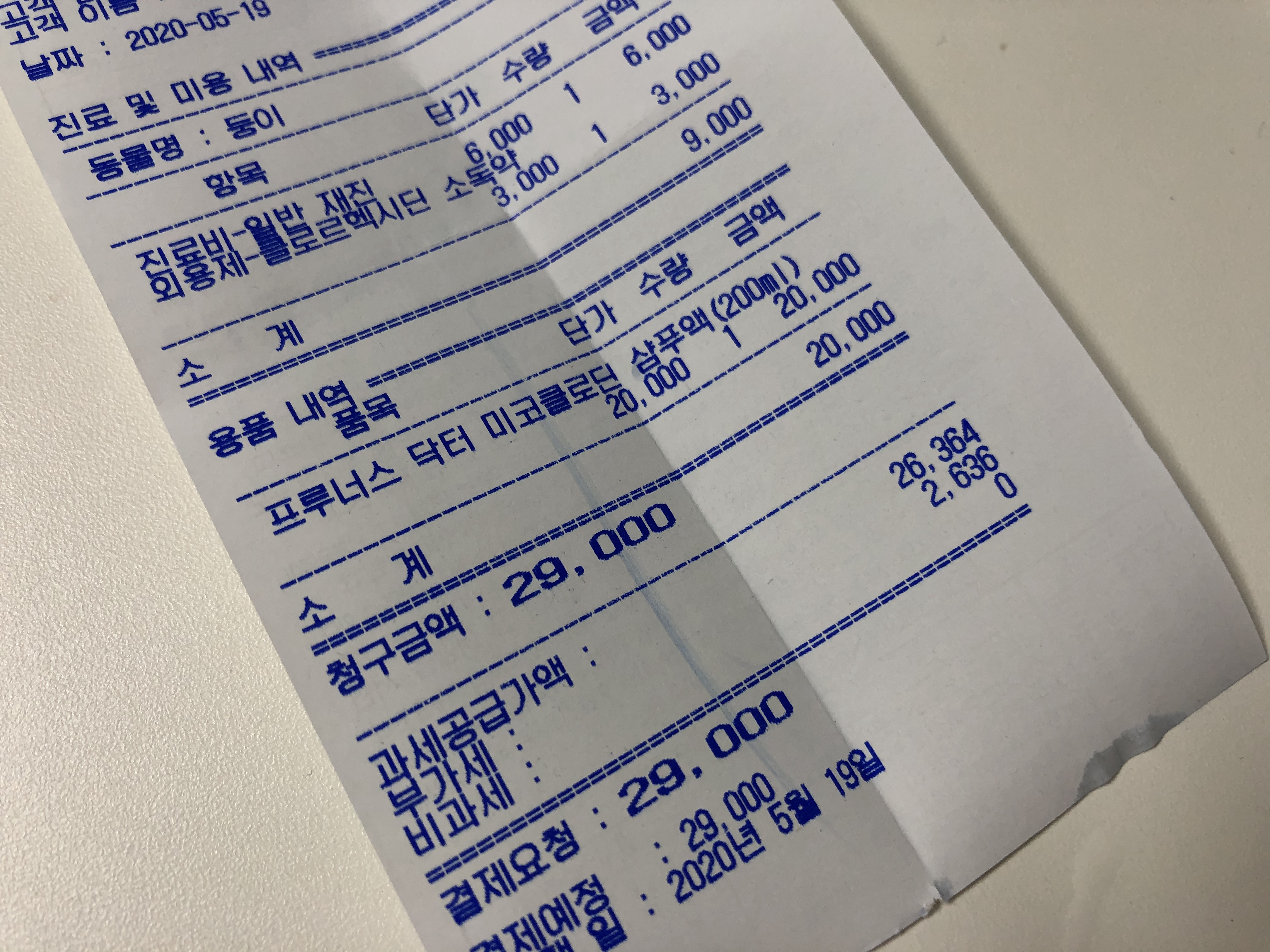 진료비 포함 총 29,000원.