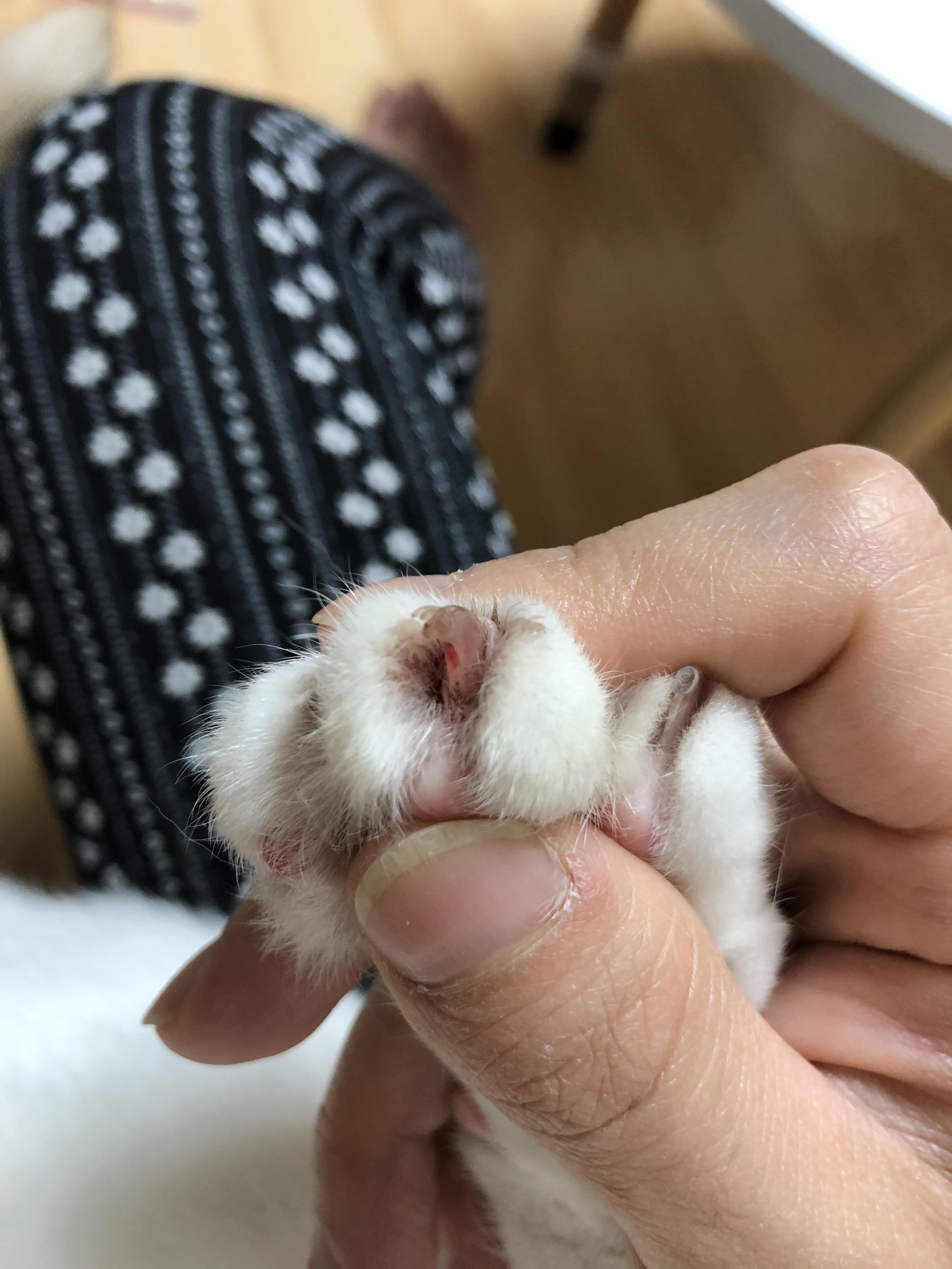 어느 날 부터인가 둥이 오른쪽 앞발 2~3번째 발톱에 까맣게 때가 끼기 시작했다. 나는 얘가 베란다나 화장실? 어디서 실컷 놀고 낀 단순히 때인줄 만 알았다. 응아가 묻었나 싶어 냄새를 킁킁 해봐도 발바닥 꼬순내만 날 뿐 딱히 역한 냄새는 나지 않았다.
