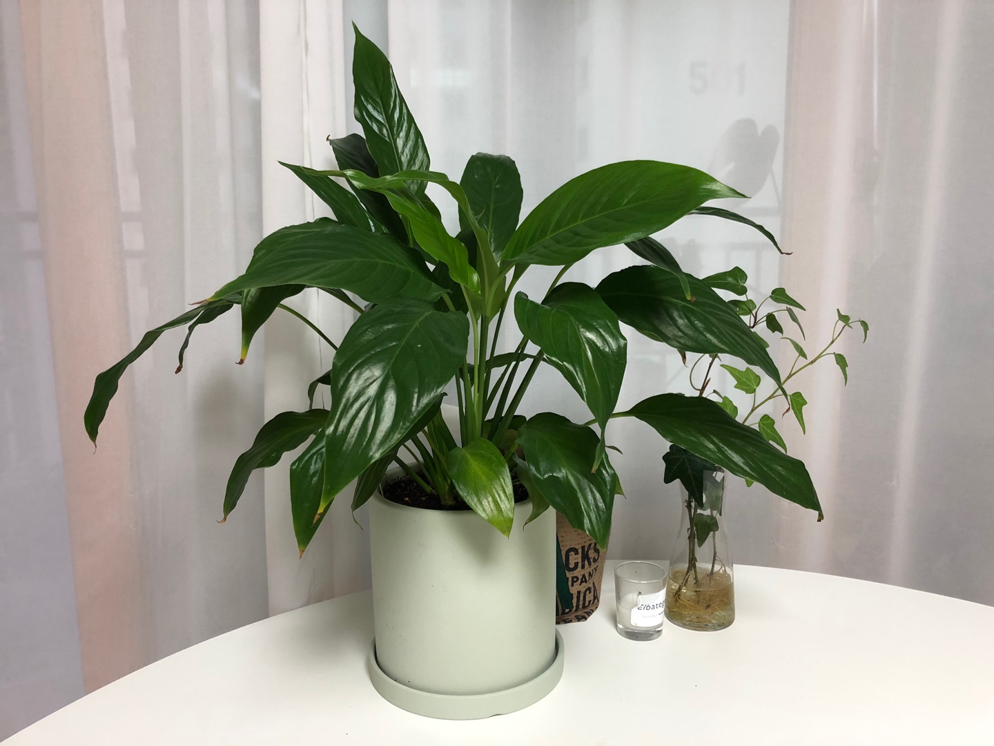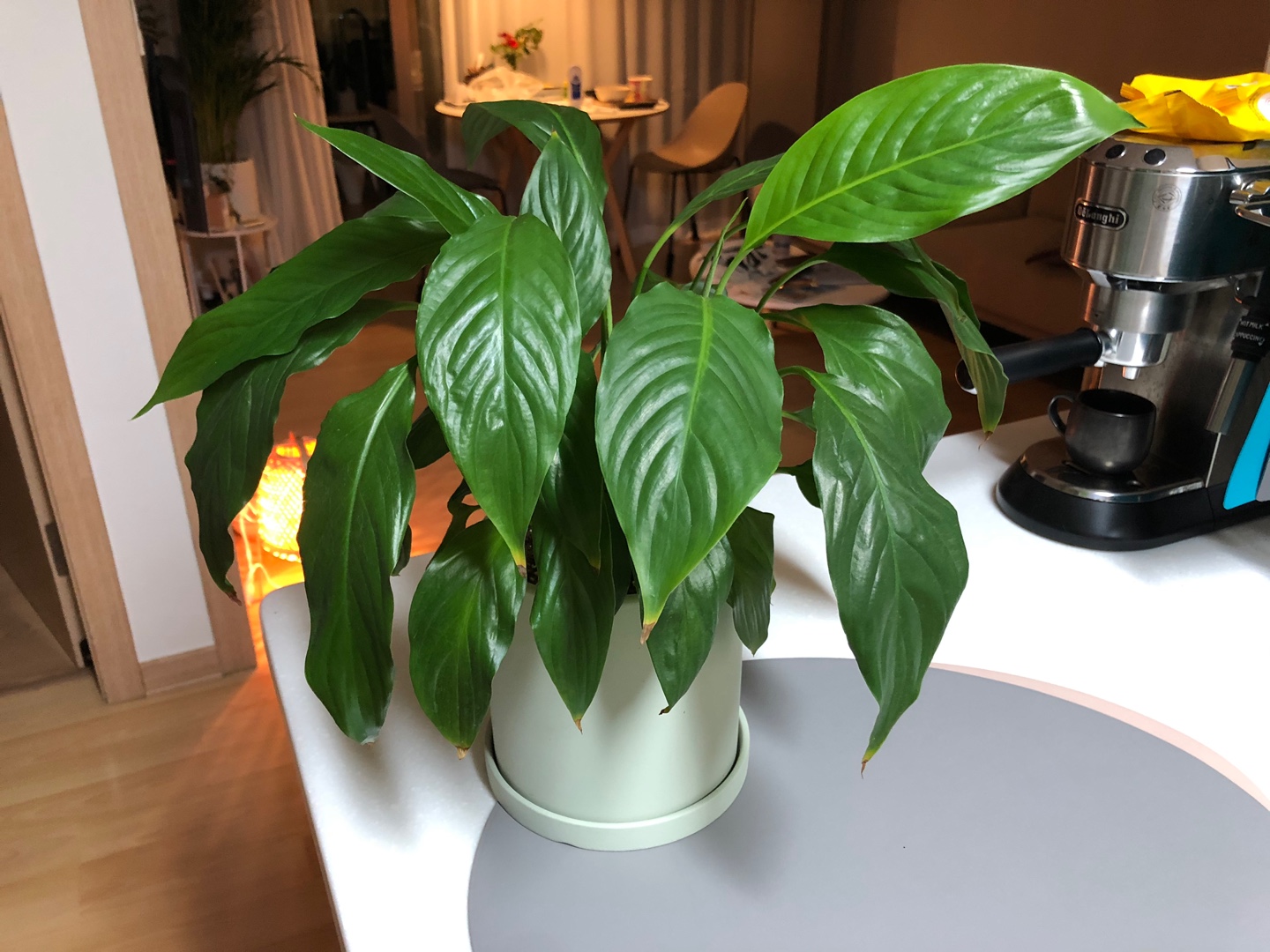 스파티필름은 물을 달라는 신호가 확실해서 참 키우기 좋은 아이다. 물이 고프면 이렇게 잎파리를 추-욱 늘어뜨리며 온몸으로 신호를 보낸다. 이정도 신호도 못알아채면 식물 키우지 말아야함. (근데 난 이렇게 신호를 보내기 전까지는 물 안줌. 침실에 놓기 땜에.. 과습이 젤 무서운 매정한 집사)