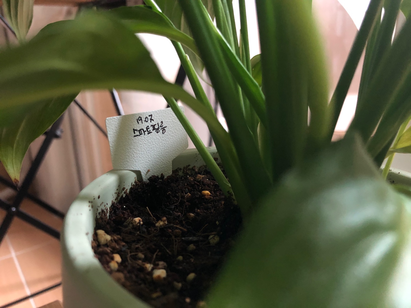 우리집에 온 지 일년이 조금 안되는데 벌써 처음 분갈이해준 화분이 작아져서 5월에 한치수 큰 화분으로 분갈이도 해주었다. 환경이 좋고 영양이 좋으면 새하얀 꽃이 핀다고하여 싱싱코트도 뿌려주었다. 올 해에는 꽃을 볼 수 있겠니?