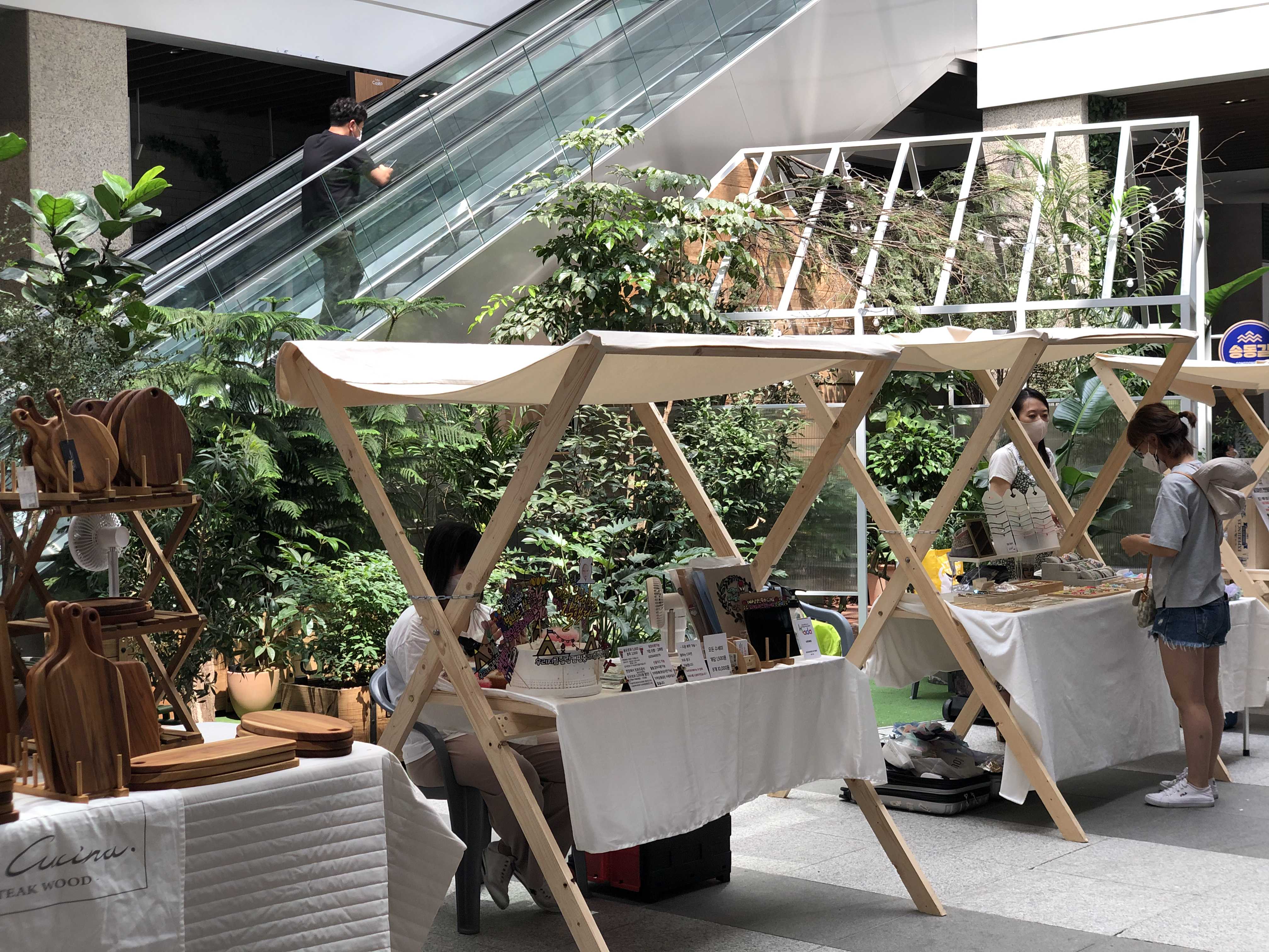 천창으로 쏟아지는 햇빛에 플리마켓에 더 활기가 돈다.
