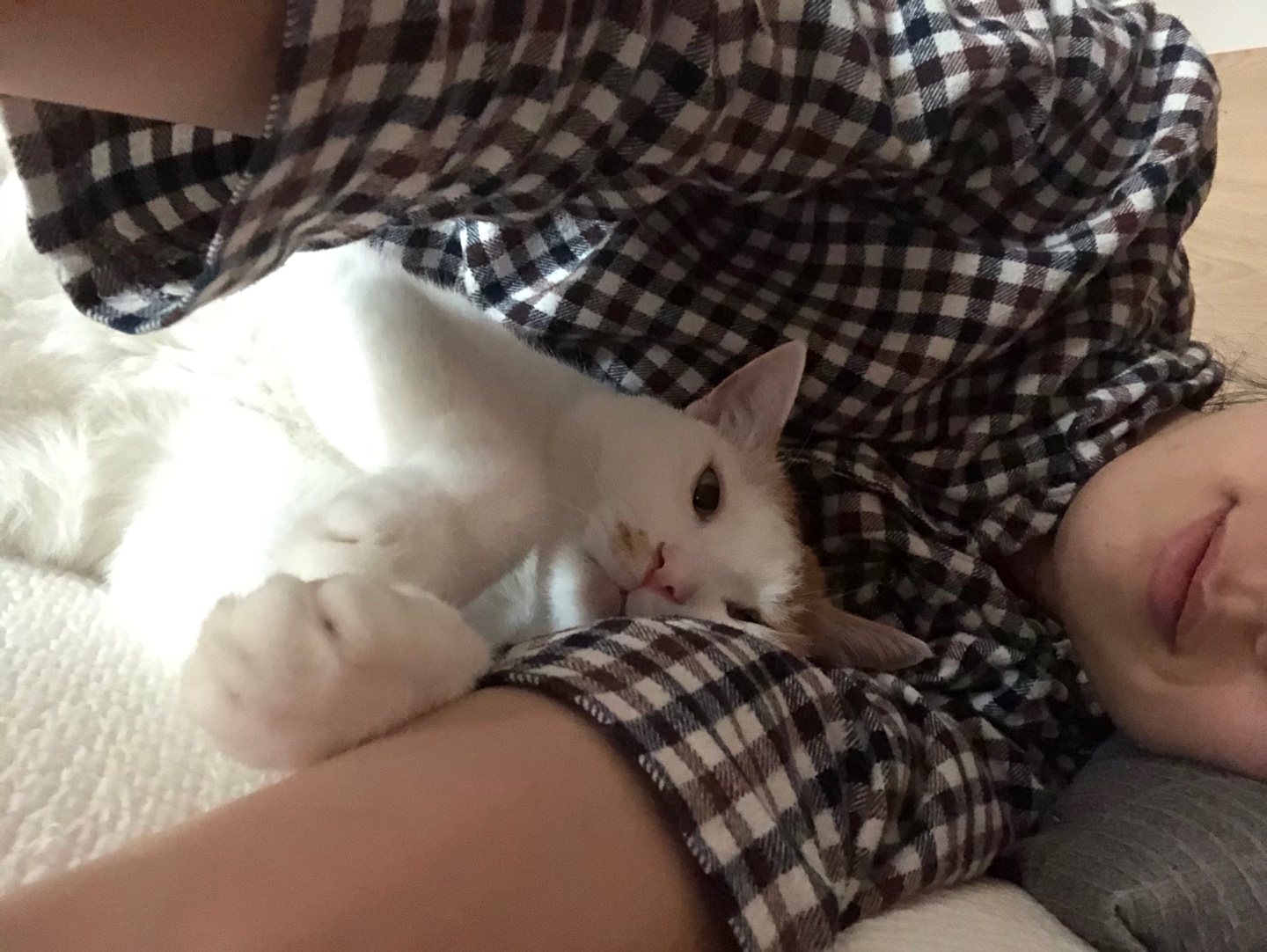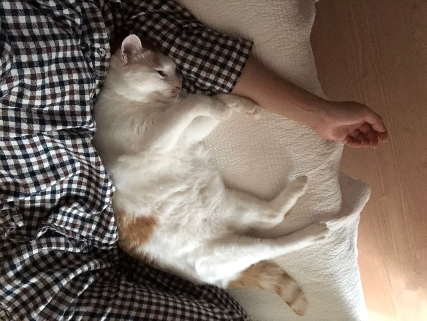 밤새 내 품에 들어왔다 나갔다 하는데 내 왼쪽 발밑 한구석에서 자는것도 좋아한다.