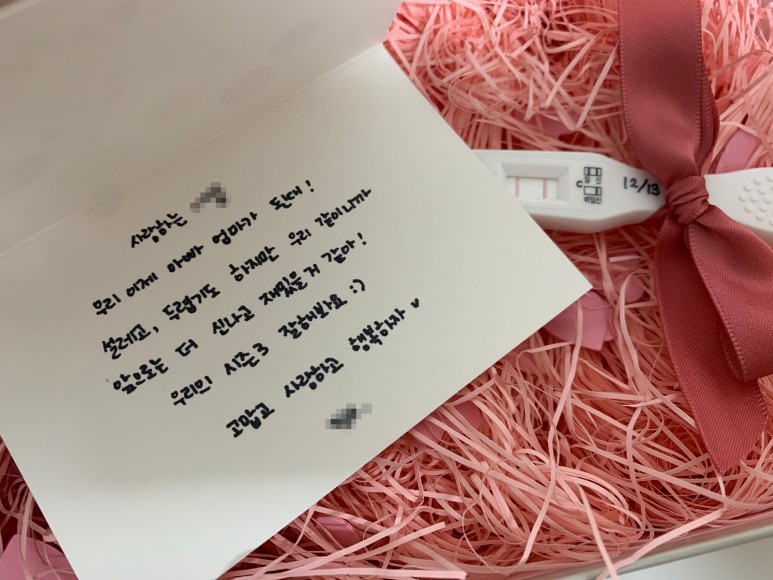 사흘 전 임신테스트기가 두줄 뜬 것을 확인했고, 바로 어제 남편 몰래 산부인과에 가서 피검사를 통해 임신인 것을 확실히 확인도 했다.