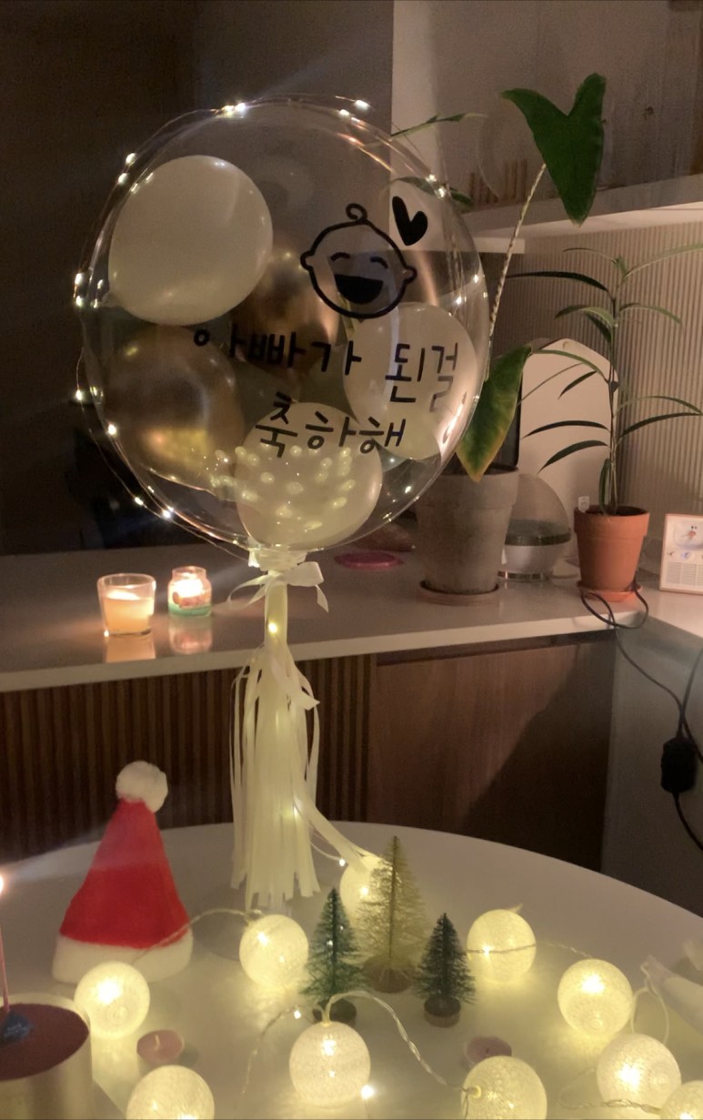 문구를 뭘로 할까 한참을 고민하다가, 심플하게 '아빠가 된 걸 축하해' 로 정했다. 아가의 입장에서 '아빠 언제 만나요~' 이런 문구도 있었지만 그건 왠지 마음에 잘 와닿지 않을 것 같았다. 그와 나를 모두 축하하고 싶었는데 적당히 깔끔하고 심플한 말을 찾지 못했다. 그리고 내가 해주는 서프라이즈니까, 온전히 그를 축하해주기로 했다.