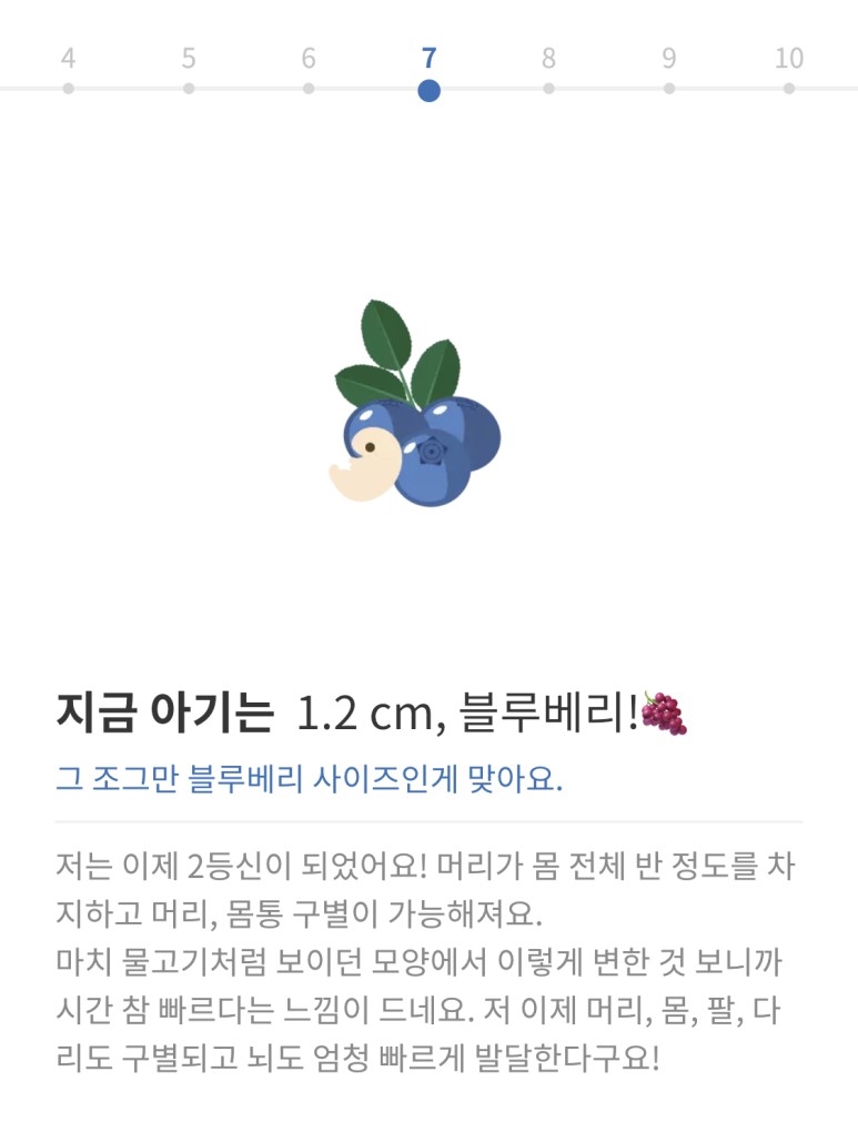 0.8cm면 6주 5일 정도의 아기 크기라고 나온다. 나의 실제 임신 주수보다 4일 정도가 작다.