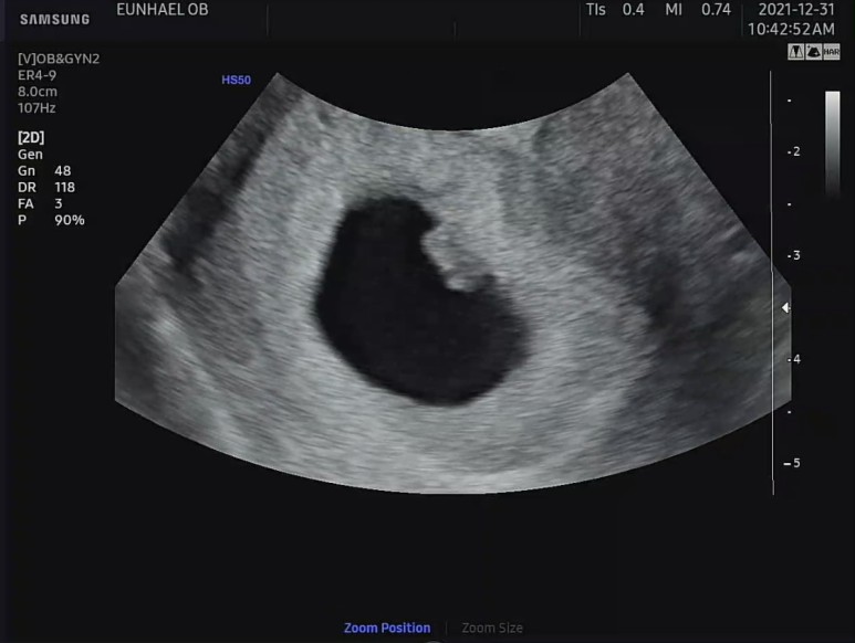 아가는 심장도 잘 뛰고 다행이 아주 건강했다. 이틀 전에 병원에서 도마뱀 모양의 초음파를 봤었는데, 이틀 전 모양과는 또 다른 모양의 아기가 초음파 속에 있었다. 아기집도 그새 좀 더 커져 있었다.