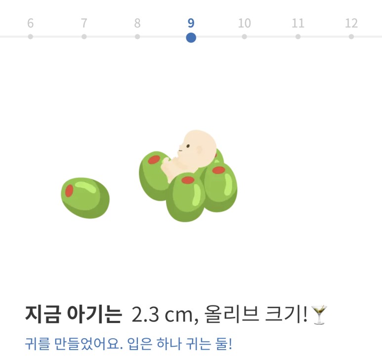 맘카페 글들을 보면 보통 8주차에 젤리곰을 봤다는 글들이 많은데, 우리 아가는 착상이 1주일 늦어서 살짝 늦은 9주 4일차에 귀여운 2등신 하리보가 되었다. 더 초기에는 일주일씩 크기가 작은 우리 아기가 걱정됐었는데, 이제 그런건 아무래도 상관없다. 꾸준히 열심히, 제 힘껏 잘 크고 있는 아기가 느껴져서 그런 걱정은 하지 않아도 되겠다는 안도감이 절로 들었다. 무엇보다 우렁찬 심장소리가 '엄마 걱정하지 마세요 나 잘 크고 있어요, 나는 강해요!' 라고 말해주는 것 같아서 무지 대견하고 나 스스로를 다잡게 되었다.