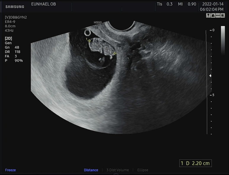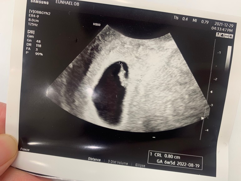 6주차에 임신인 걸 확인하고, 일주일 뒤인 7주차에 아기집 안에 아기가 빼꼼 자란 걸 확인했다.