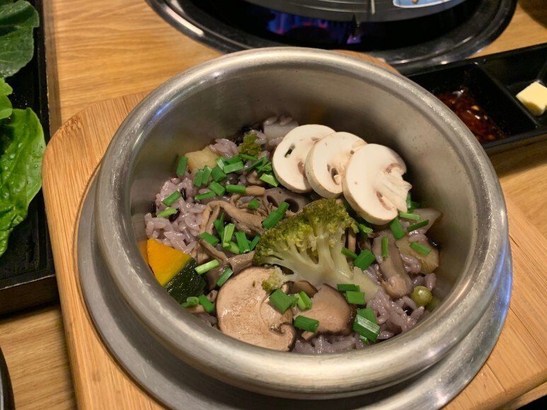 솥밥에 버섯, 브로콜리, 단호박 가득. 불고기 한가득에 당면 한가득.. 우렁쌈밥에 된장찌개 구성까지.
