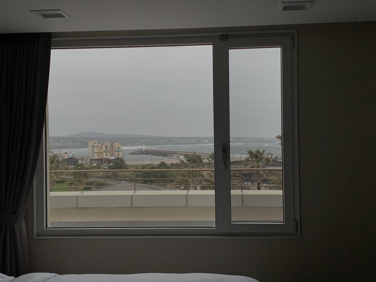 창문을 닫아도 거칠게 몰아치는 파도소리가 크게 들렸다. 제주 ASMR 삼아 폭신한 침대에서 꿀잠..