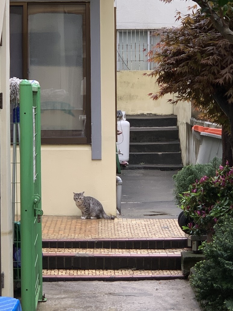 올래국수 옆 웨이팅존. 빨간 동백이 아직 피어있다.