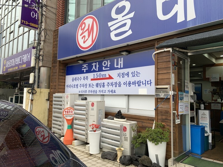 근처 마리나호텔에 주차하고 한블럭 뒤로 돌아가면 보이는 올래국수.