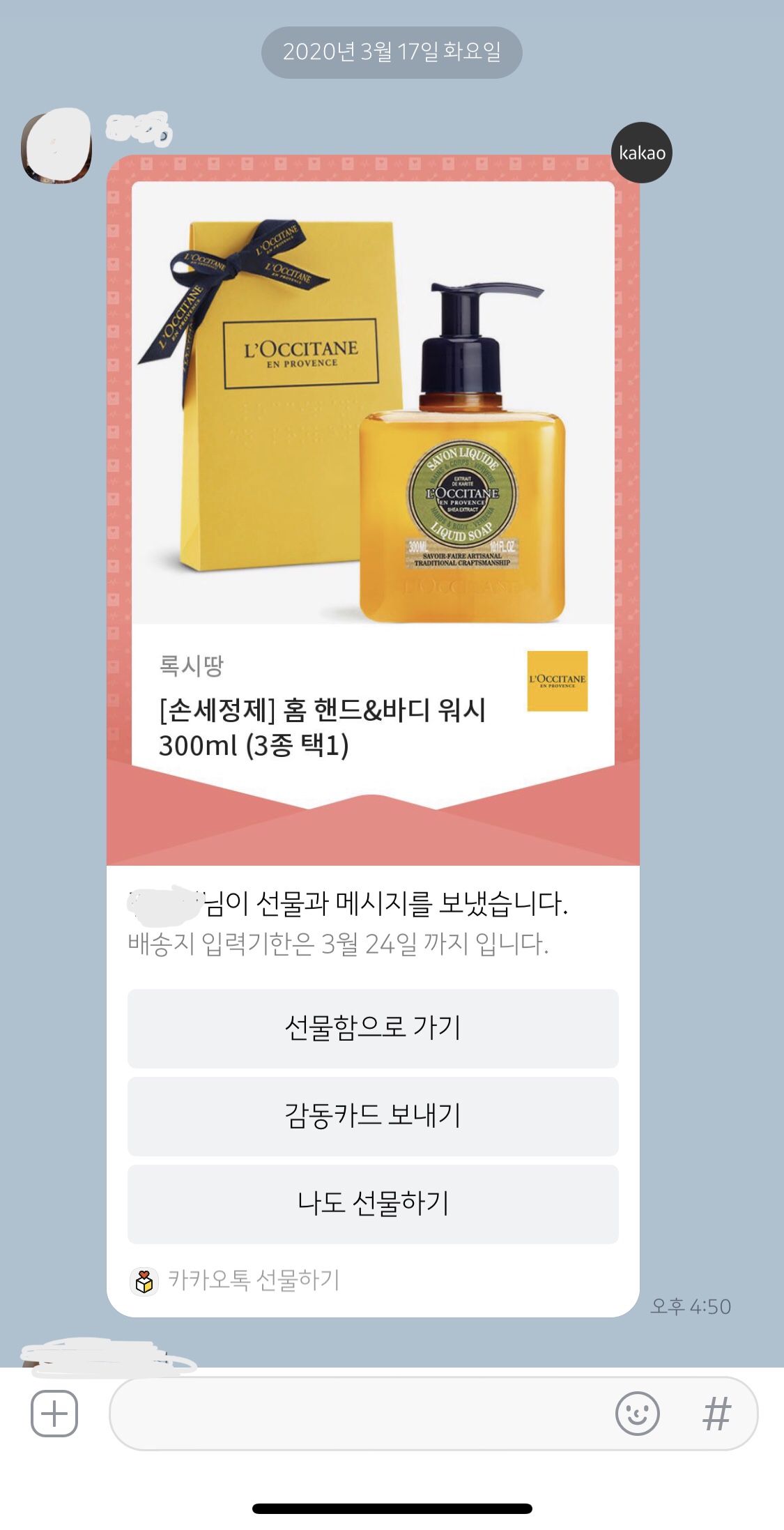 이번 생일에는 코로나 때문에 친구들은 못 만났지만 카카오톡으로 선물을 여러개 받았다. 나도 시누이나 사촌들 생일에 기프티콘이나 귀걸이 정도 선물한 적이 있었는데, 카카오의 선물하기 기능은 참 좋은 것 같다. 내가 직접 택배를 보내는 수고도 덜 해주고 중요한 건 상대의 주소를 몰라도 선물을 보낼 수 있고! 카카오는 혁신이야..