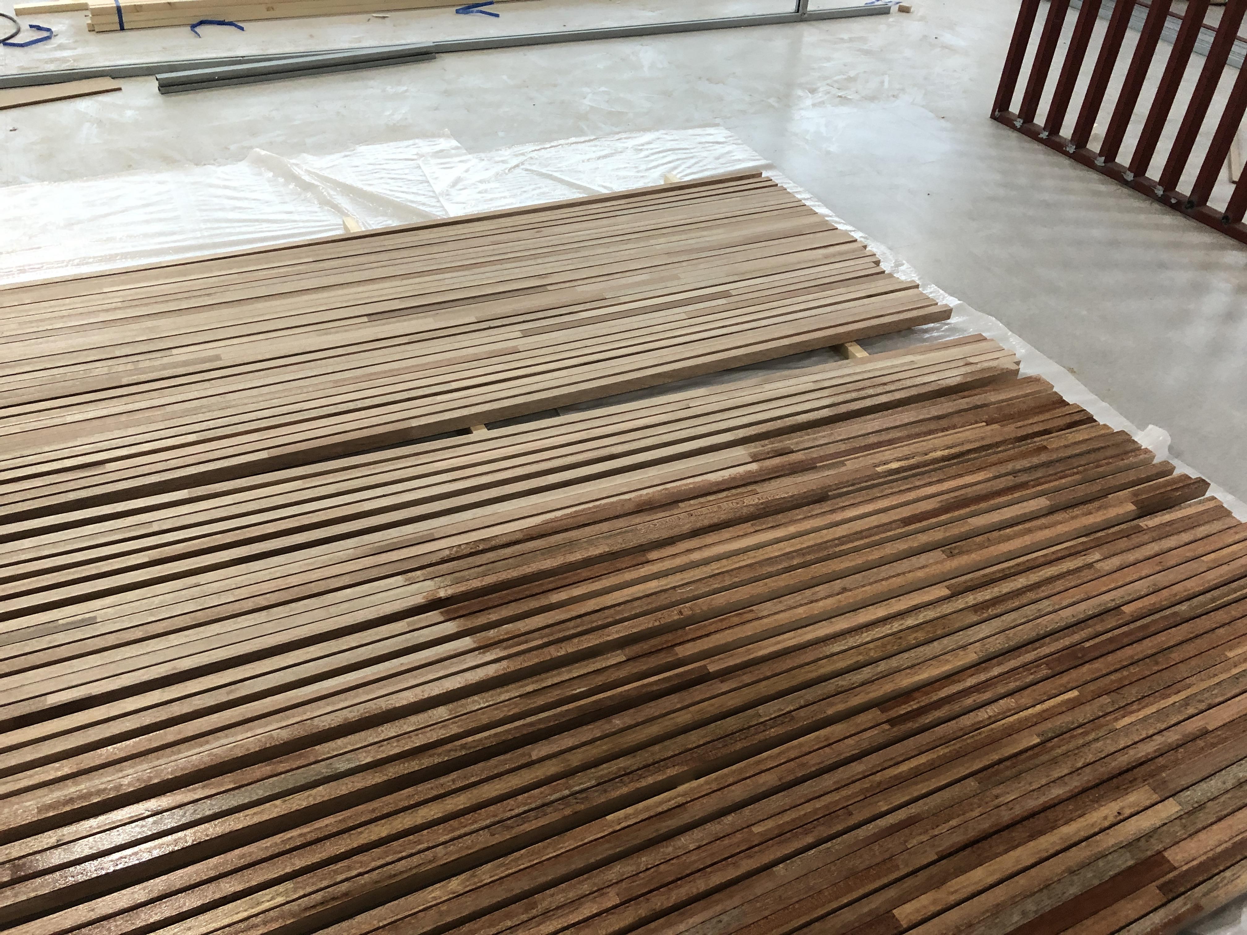재단한 라왕 루버 깔아놓고 나뭇결대로 사포질.